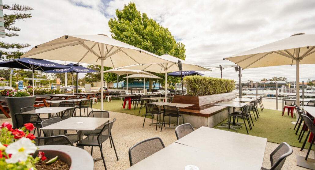 Our glass-walled water-facing vergola is suited for events all year round. Capable of holding events between 3-120 guests whilst facilitating for both high and low seating, the vergola is our most popular area for entertaining.